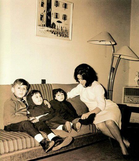 Photo d'archives montrant la chanteuse Fayrouz avec ses 3 enfants, Hali, Rima et Ziad (de droite à gauche).